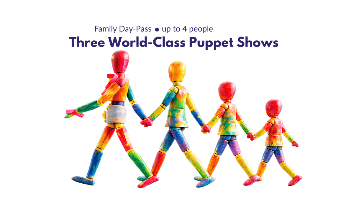 On March 21, 2026 treat your family to a full day of unforgettable theatre with three extraordinary world class puppet performances—all included in one family day pass for up to four people.