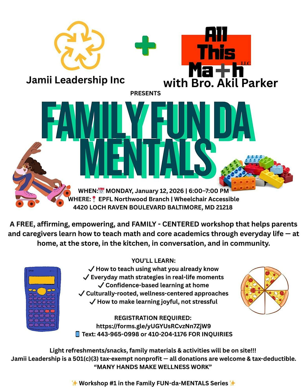 Join Jamii Leadership & Dr. Akil Parker of All This Math for a joyful, hands-on, family-centered workshop designed to help parents and caregivers build confidence teaching math at home.