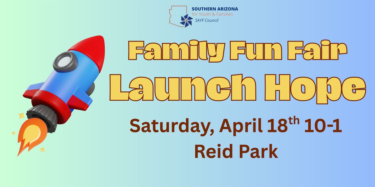The Southern Arizona Youth and Family Council presents our annual Family Fun Fair: Launch Hope, a free kid-friendly event for families. This event will include fun activities for kids such as facepainting and kite making, as well as games, giveaways, and lots of free food, as well as tons of valuable resources for families.