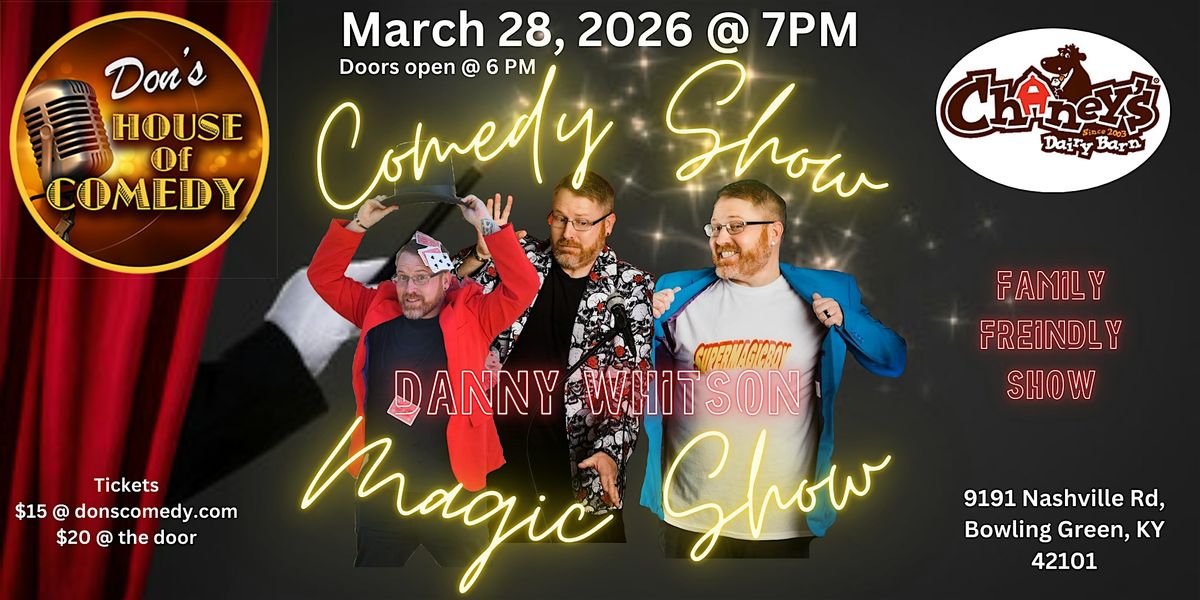 Family magic and comedy show featuring Danny Whitson. Ages 10 and under are free. Come early for dinner and meet the magician!!