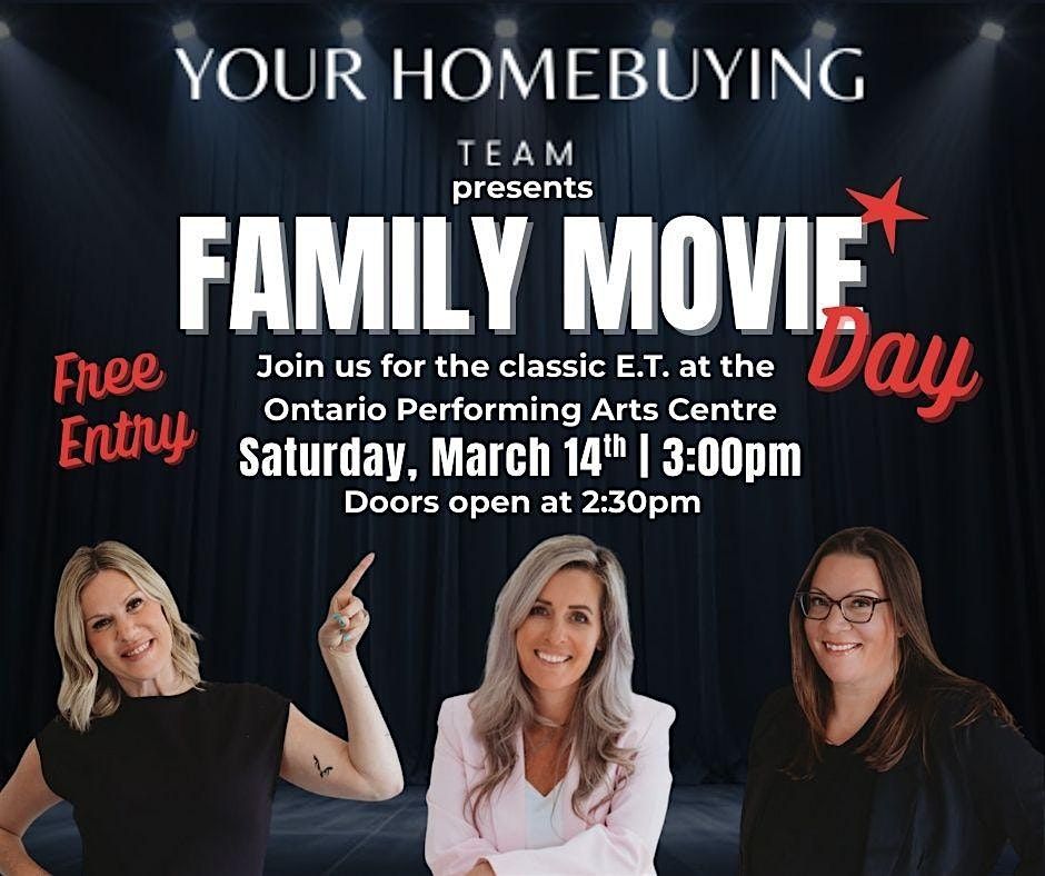 FREE family movie day! E.T. at FirstOntario Centre, March 14, 3 PM. Brought to you by Your Home Buying Team