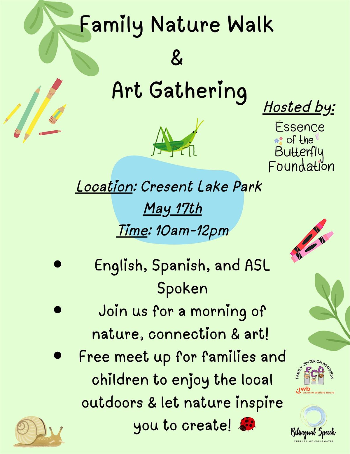 The Family Nature Walk and Art Gathering, put on by Essence of the Butterfly Foundation, is a free meetup for families and children to enjoy the local outdoors and let nature inspire them to create.