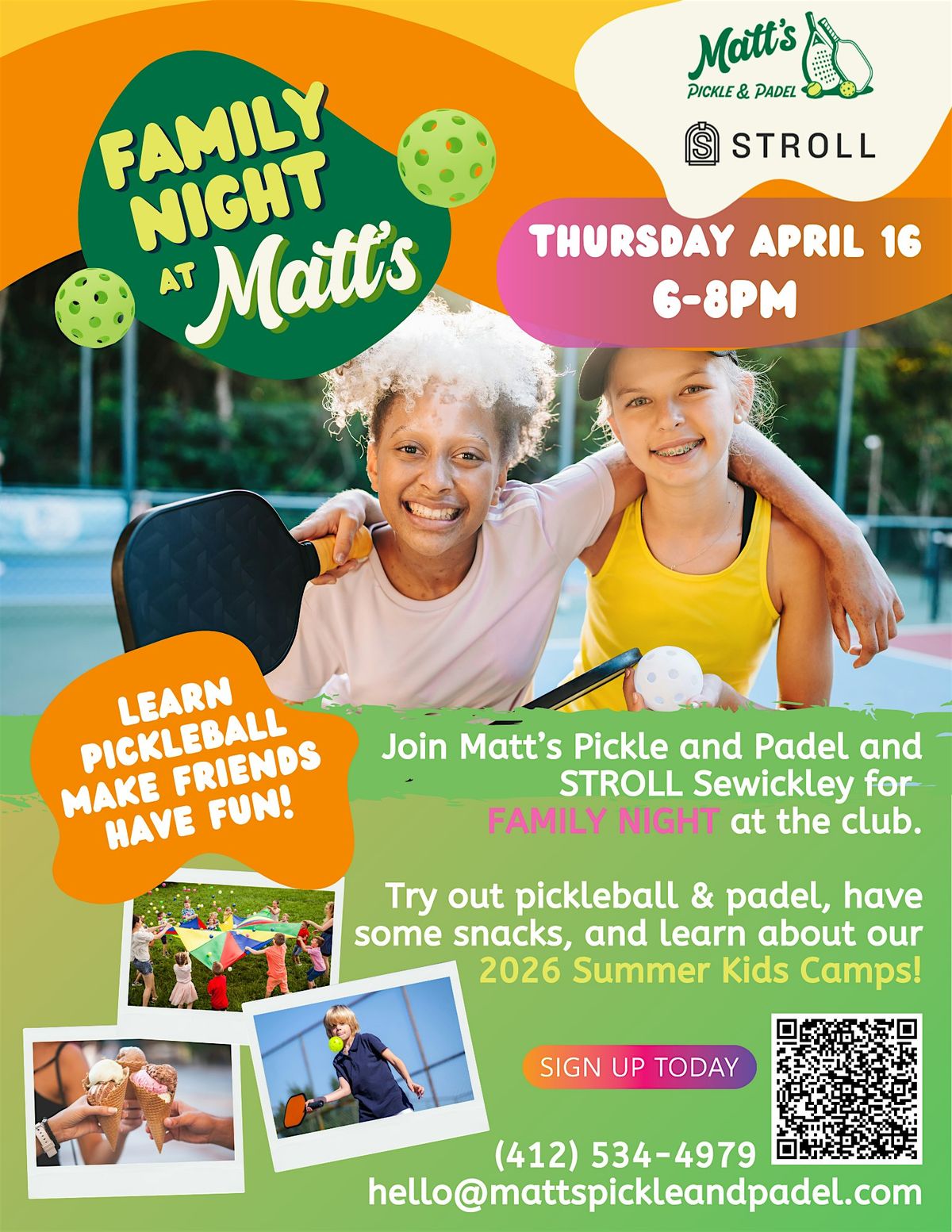 Come join the fun at Family Night with pickleball, padel, and good vibes at Matt's, thanks to STROLL Sewickley!About this Event