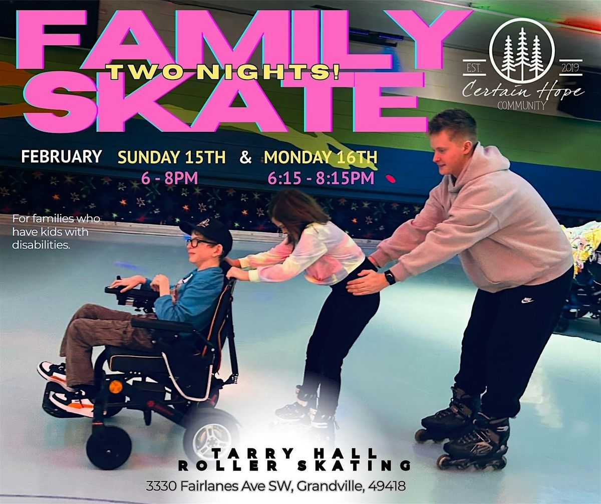 This Family Skate is an opportunity for every one to have a blast together and beat the winter blues. Roller blades, skates, wheel chairs or any adaptive equipment with wheels are all a GO for the rink! It will only be Certain Hope Families at the rink.