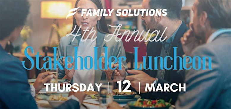 Join us in person for the Family Solutions 4th Annual Stakeholder Luncheon! It's a great chance to connect, share ideas, and celebrate the amazing work happening in our community. Don't miss out on good food, inspiring conversations, and the opportunity to meet fellow stakeholders. We can't wait to see you there!