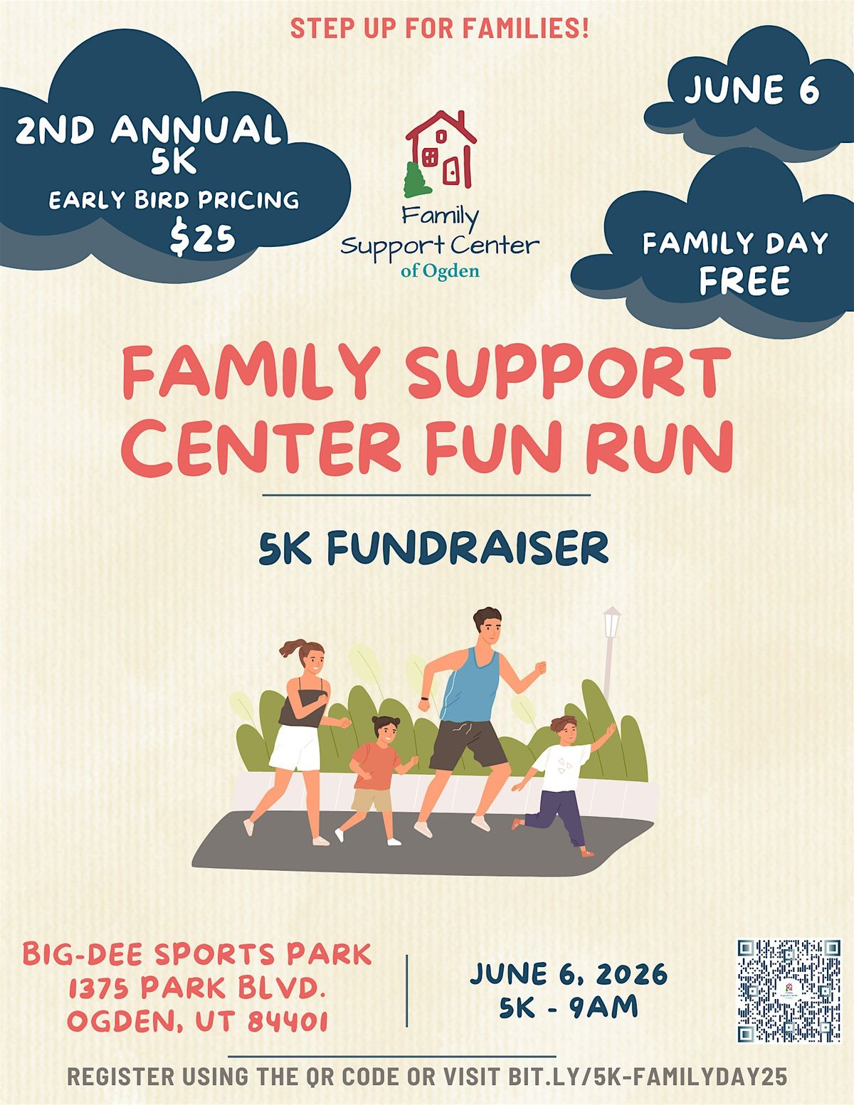 Join us for a fun-filled day for a fundraiser 5K supporting the Family Support Center of Ogden. We are local non-profit whose mission is to providing education and supportive services to strengthen the family unit and enhance family functioning. We offer a various resources to families in the community focuses on strengthening families and building resilience.