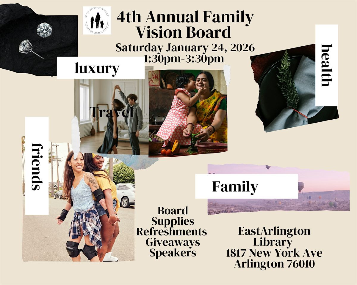 Hey there! Are you ready to kick off the new year with some positive vibes? Join us for a fun and creative Family Vision Board event on January 24, 2026 at 1:30 PM at 1817 New York Ave. Let's gather together and visualize our dreams and goals for the upcoming year. It's a great opportunity to bond with your loved ones and set intentions for the future. Don't miss out on this inspiring experience! See you there!