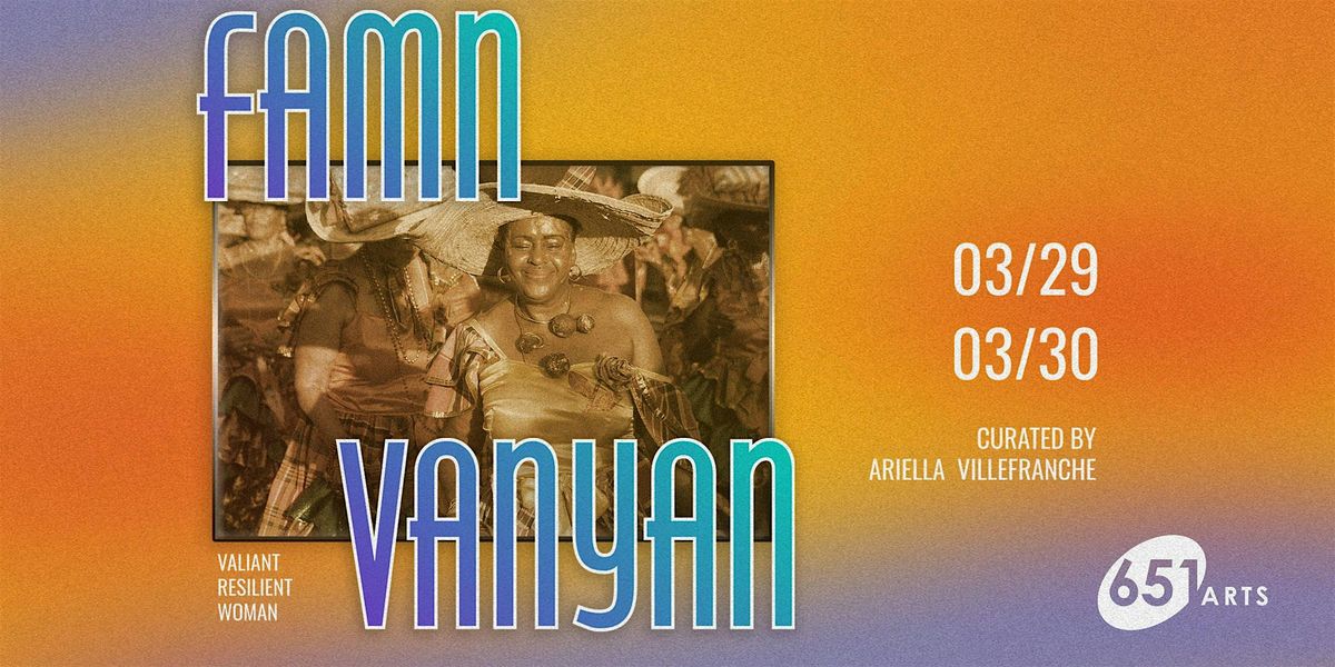 Presented by 651 ARTS as part of its Women's History Month programming, Famn Vanyan - Haitian Kreyòl for "valiant woman" or "resilient woman", is an interdisciplinary program honoring the creativity, strength, and cultural leadership of women across the diaspora. Curated by 651 ARTS Curatorial Fellow Ariella Villefranche, the series explores the connections between Haitian musical traditions, contemporary sound, and the communities that shape artistic practice today. Rooted in Villefranche's exploration of the meeting point between ancestral rhythms and modern sonic landscapes, Famn Vanyan celebrates the enduring resilience and creative power of women across generations.