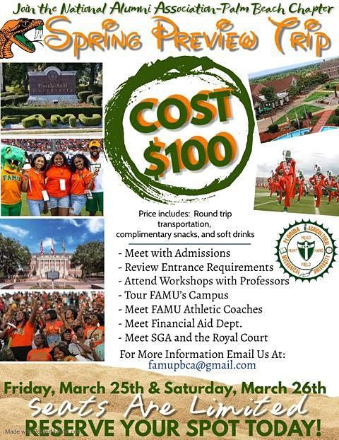 Attention All Palm Beach County High School Students!! We are taking an overnight trip to THE ONE, THE ONLY..... FLORIDA AGRICULTURAL AND MECHANICAL UNIVERSITY! SPOTS ARE LIMITED!!