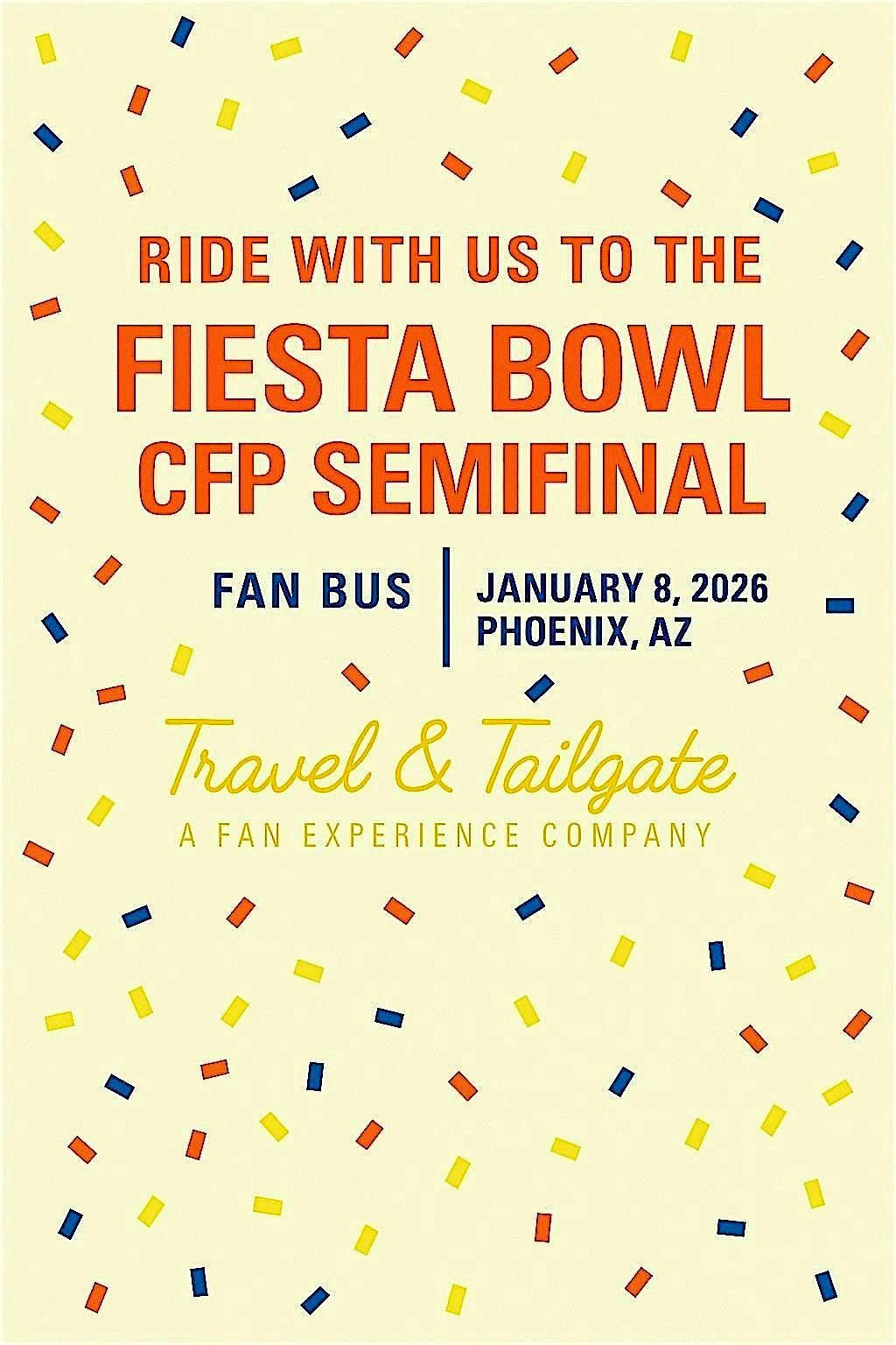 Headed to the College Football Playoff Semifinal at State Farm Stadium? Skip the crowded Metro Rail and game‑day traffic — ride in comfort and style on our exclusive fan bus service. This direct shuttle connects downtown Phoenix hotels to the stadium, giving you a stress‑free, community‑driven way to arrive together and enjoy the pre‑game atmosphere.