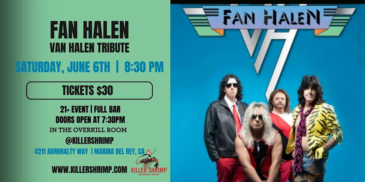 Turn it up and get ready for a full-throttle rock experience as Fan Halen – The Ultimate Van Halen Tribute hits the stage in The Overkill Room at Killer Shrimp.