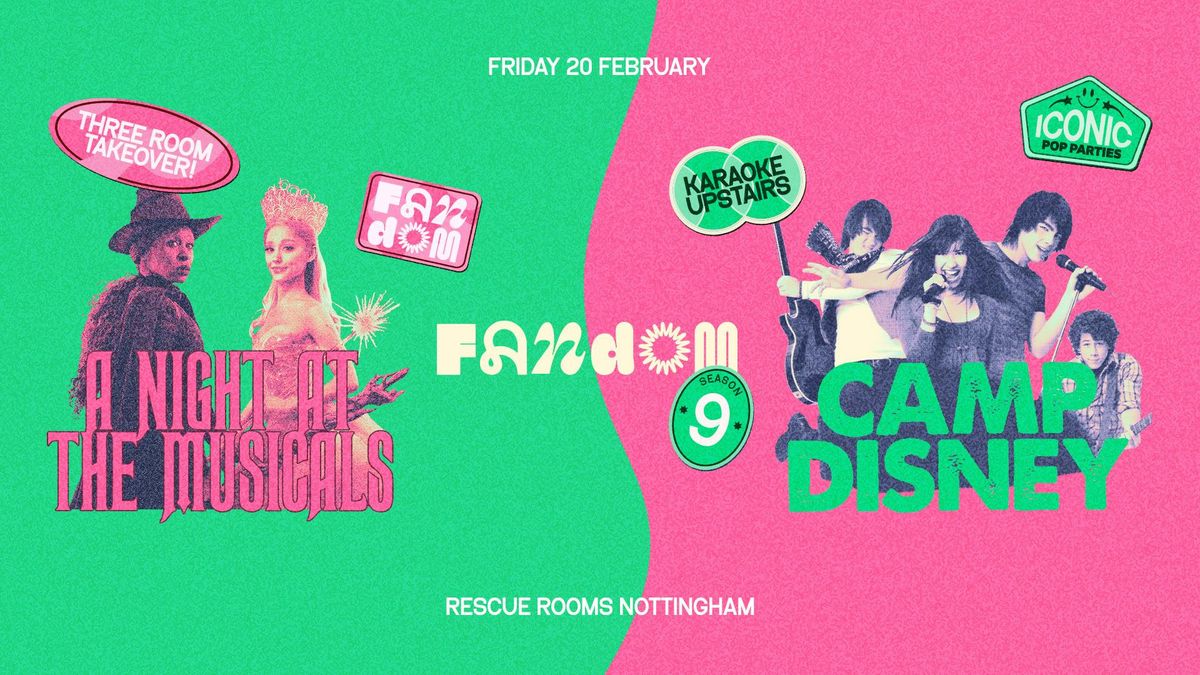 Fandom: A Night at the Musicals x Camp DisneyIt's the biggest season of Fandom, ever! For the first time we're taking over all three rooms at Rescue Rooms, with themes in both the main club room and the bar, plus Fandom Karaoke upstairs every week!