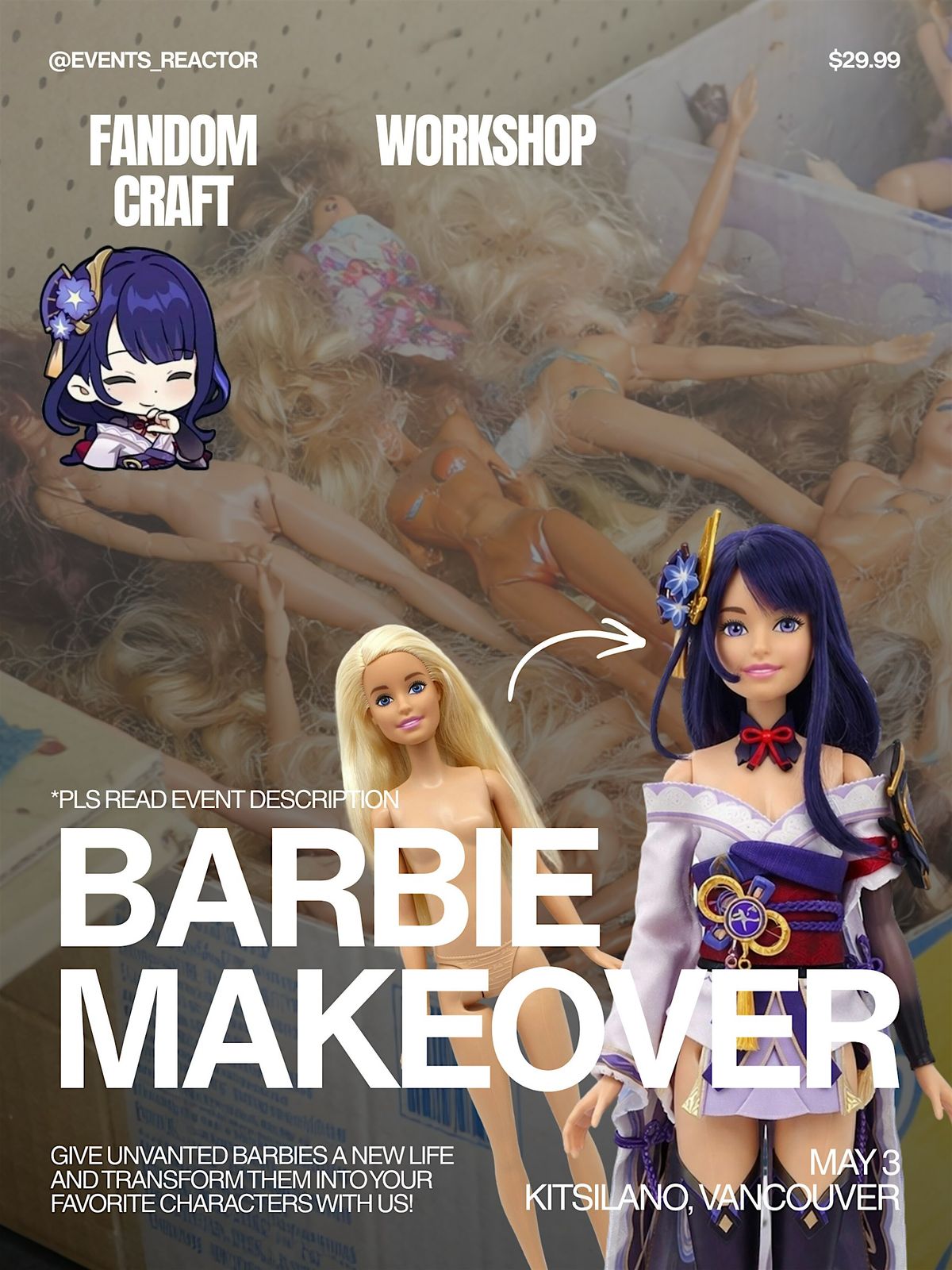 So my idea for this event is to use the box of the unwanted barbies I got from a thrift store and turn them into the characters from the games/movies/anime whatever you love! I will be providing all the materials, including the hair, fabric for clothing and lots of advice.