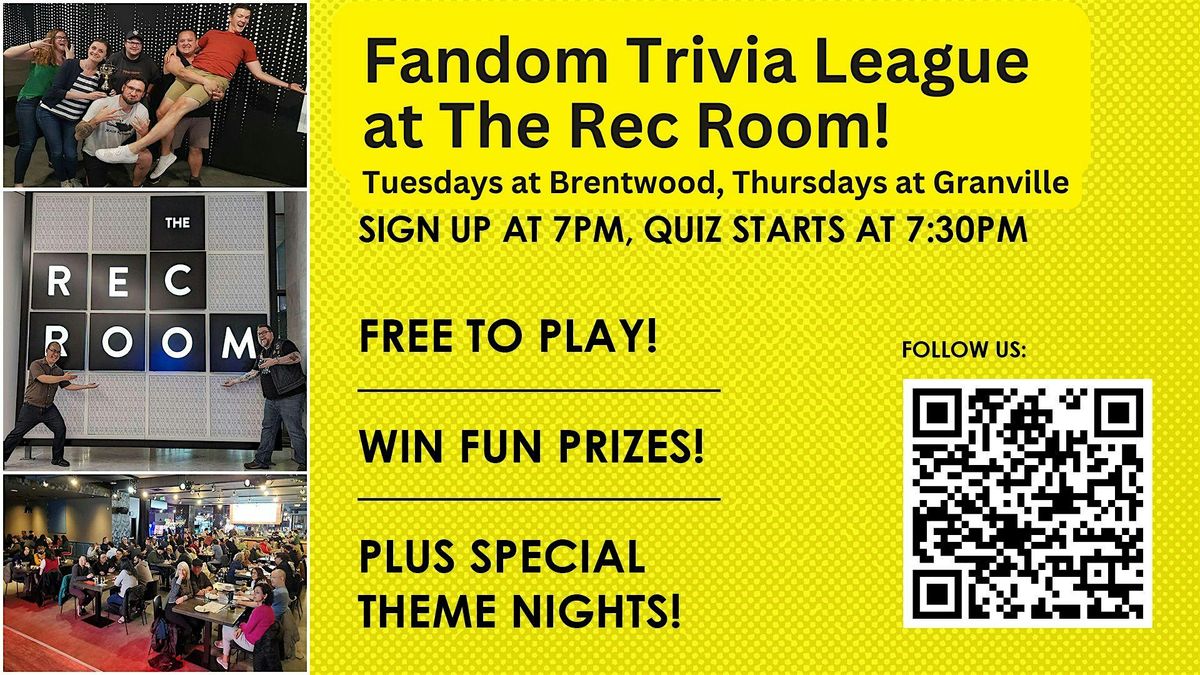 Fandom Trivia at The Rec Room - Free Pub Quiz, Theme Nights and Prizes!