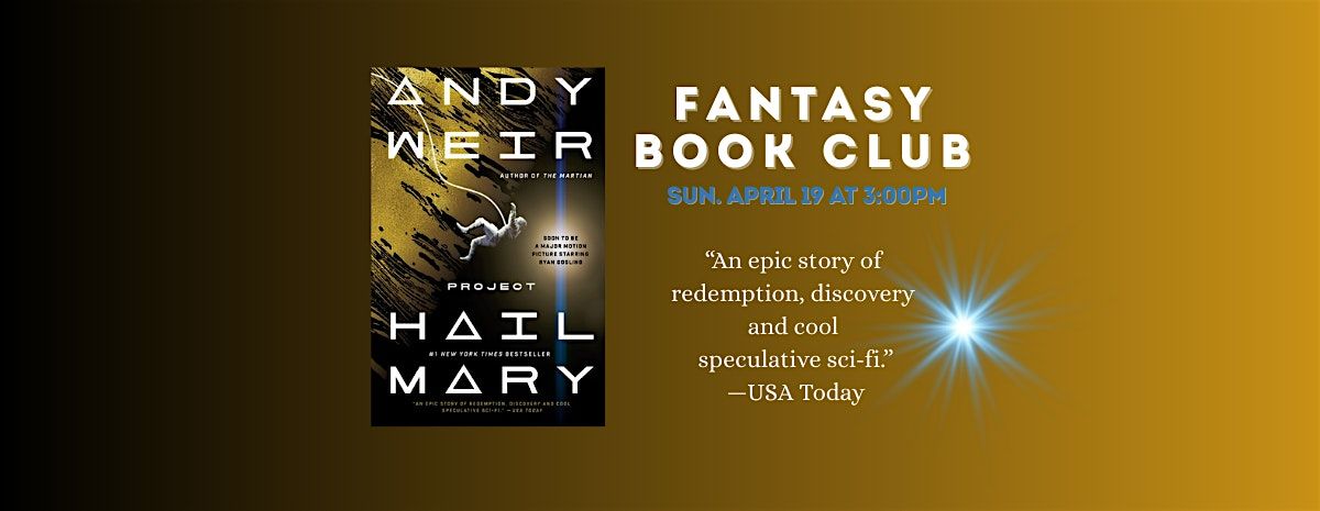 Fantasy Book Club is heading in a whole new direction, this time, to space! Please join us for our exploration of Project Hail Mary for our April pick.