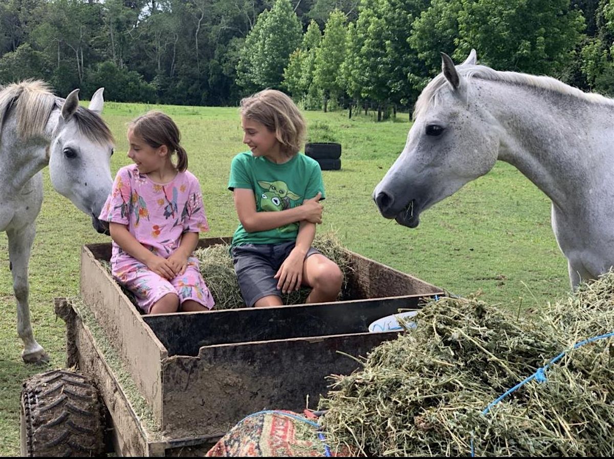 During the 1.5 to 2 hour farm animal experience tours participants will be moving around on the farm, so come prepared with hats, sunscreen, bug spray (if needed), closed in shoes and enough drinking water & snacks for the little ones. Sunglasses are also helpful on the farm especially for the kids as things can get dusty feeding the horses if it is a windy day. We also recommend you bring a few bags of carrots if you would like to walk around the farm and feed some horses after the tour. Also if you have any fresh food scraps or peels from the few days before your tour date we would love for you to bring them. I’m sure the animals will appreciate it!