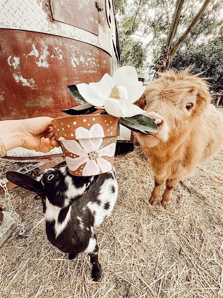 What is more fun than painting while sipping on mimosas? How about painting in the company of farm animals and a highland cow named Mimosa?!!!