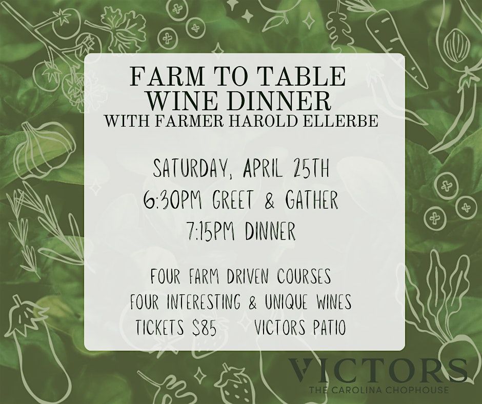 Farm to Table Wine Dinner with Farmer Harold Ellerbe