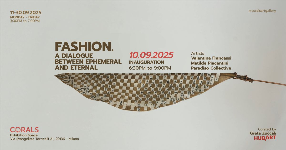 Yet, at the heart of this vibrant and continuously transforming phenomenon lies a fascinating paradox: its intrinsic impermanence. And it is precisely this aspect—the ephemeral beauty of fashion—that is the focus of the exhibition “Fashion. A Dialogue Between Ephemeral and Eternal” opening on Wednesday, September 10, at Galleria Corals, featuring works by Matilde Piacentini, Valentina Fracassi, and Paradiso Collective.