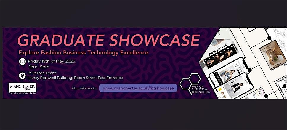 We are delighted to invite you to the Fashion Business & Technology Class of 2026 Graduate Showcase at the University of Manchester. The event will take place on Friday, 15th May 2026, from 14:00 to 17:00 at the Nancy Rothwell Building, Event Space, Booth Street East, Manchester. We look forward to celebrating the achievements of our graduating class and hope you will join us for this special occasion.