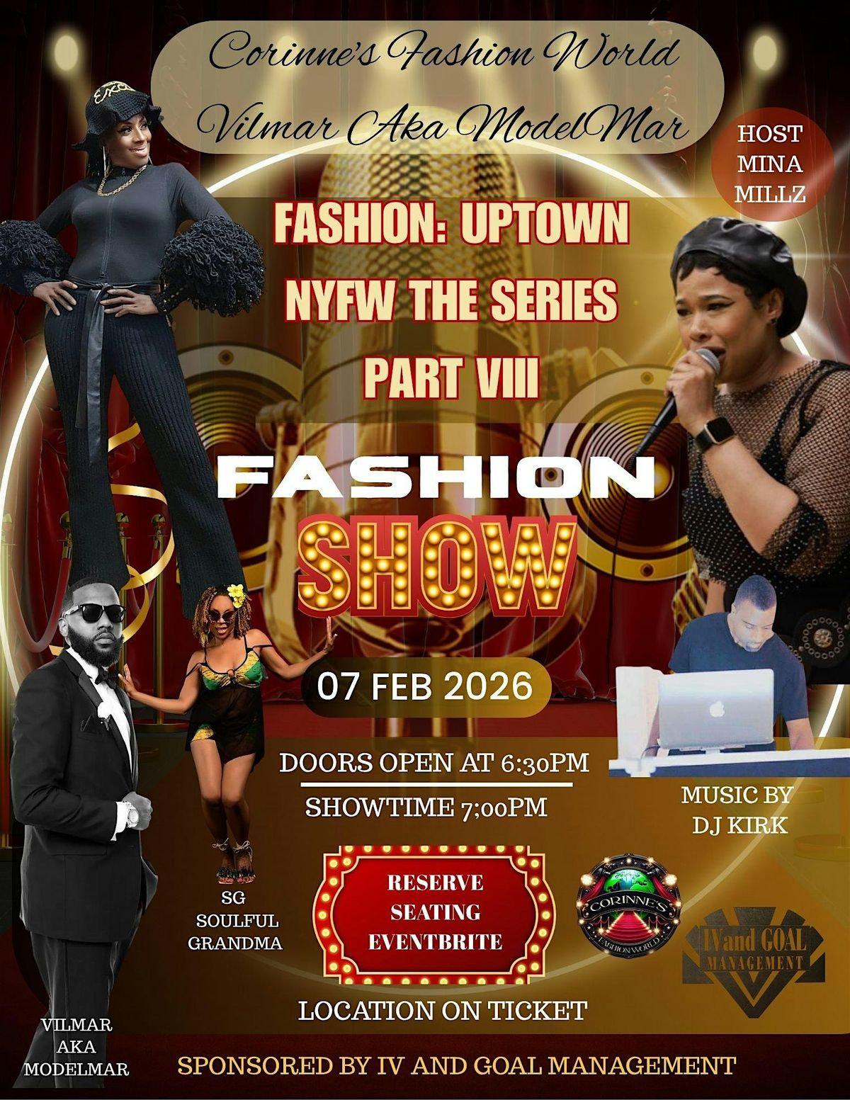 Fashion UPTOWN NYFW The Series Part VIII is a live runway show featuring top emerging designers and models. A night of creative fashion.