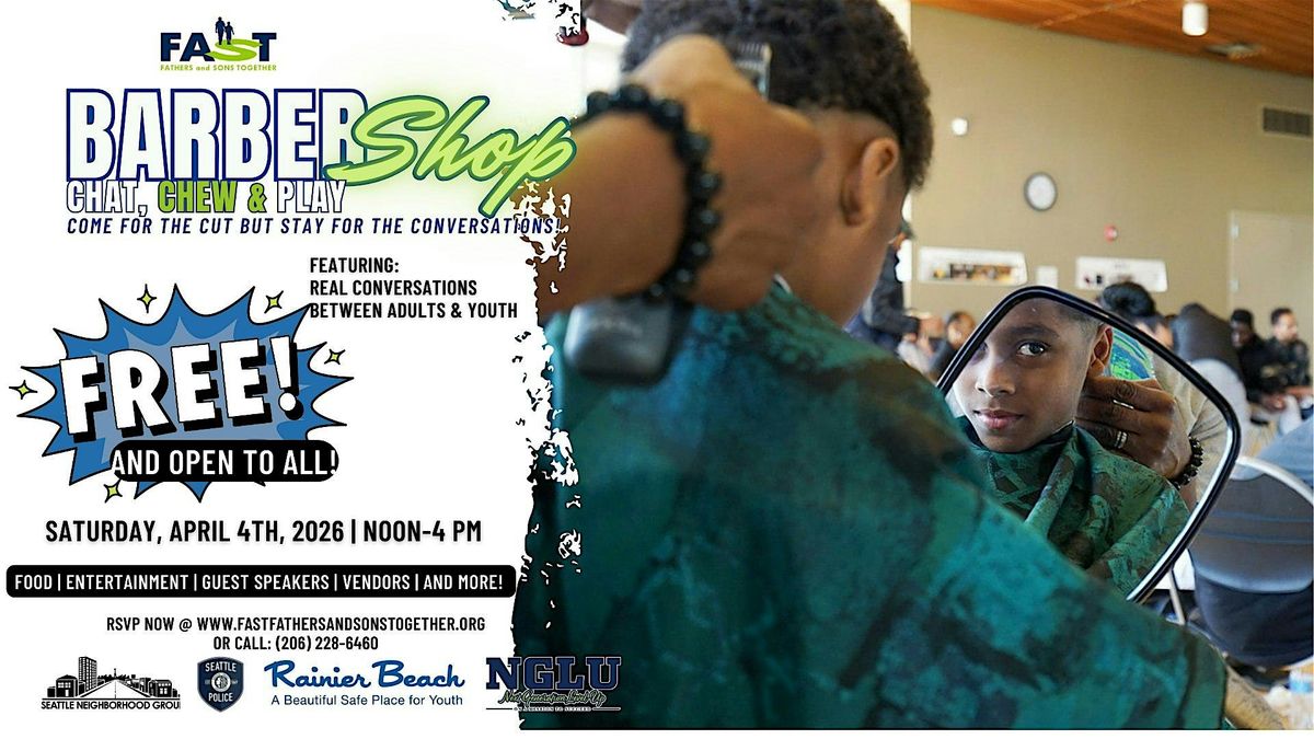 Fathers and Sons Together (FAST) is bringing that tradition to the Rainier Beach Community Center Plaza on Saturday, April 4th. Barbershop Chat, Chew & Play is a free outdoor community gathering featuring real conversations between adults and youth, live entertainment, guest speakers, food, vendors, and — yes — fresh cuts.