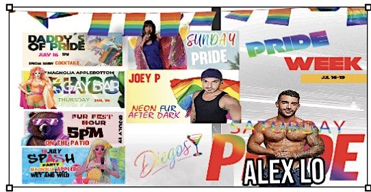 Join us in person for an unforgettable night with dj Alex Lo, the international sensation spinning all your favorite beats. Let's celebrate pride with amazing vibes, great people, and epic tunes. Don't miss out on the fun—bring your friends and dance the night away!