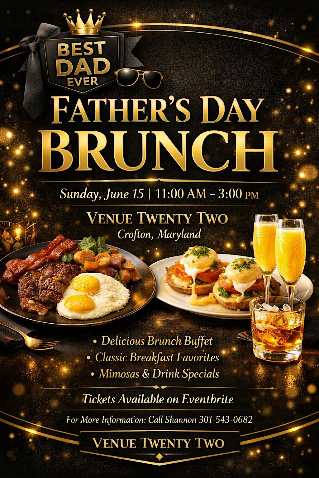 Celebrate your dad in style! Join us for a fun unforgettable experience filled with great food, refreshing drinks and an amazing atmosphere as we honor all the incredible fathers. Bring the family out and enjoy a delicious brunch while creating memories that will last a life time.