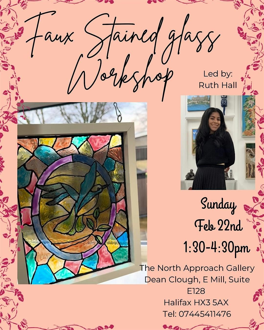 Welcome to the Faux Stained Glass Workshop at The North Approach Gallery! Join us on February 22, 2026 for a creative and fun experience. Learn how to create beautiful faux stained glass pieces to decorate your home or give as unique gifts. No prior experience needed - just bring your enthusiasm! Materials and templates will be provided. Don't miss out on this opportunity to unleash your artistic side and meet fellow art enthusiasts. See you there!