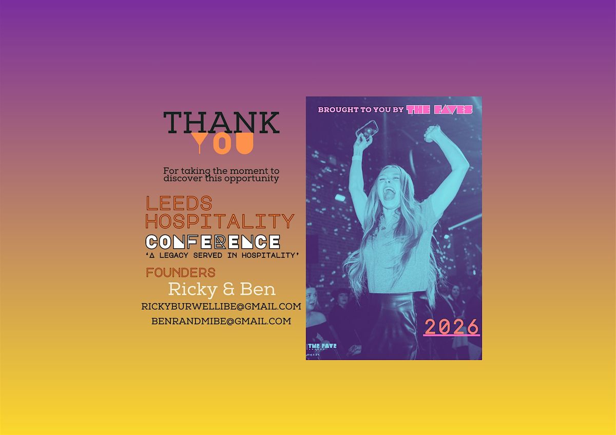 What's this Conference about: Right in the heart of Leeds, this three-day gathering is for the people who keep hospitality alive - the true backbone of our industry: the main level and frontline who work the floor, host the door, behind the bar, in the kitchen, sort deliveries and so much more during your shifts.