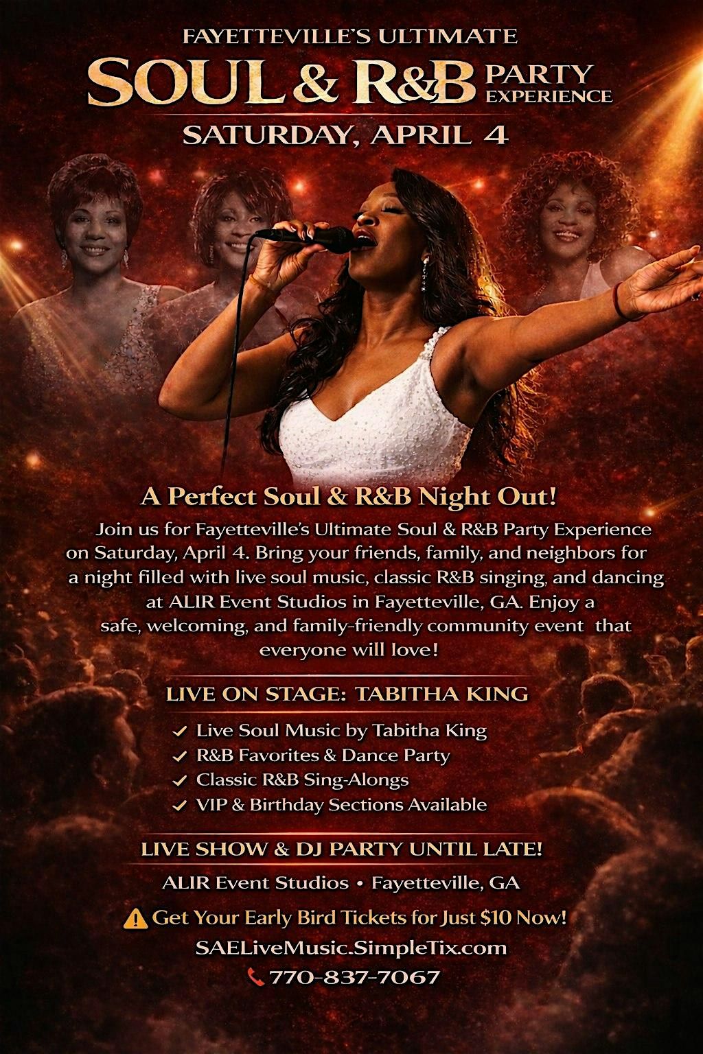 Join Simply Awesome Entertainment (SAE) for a Soul & R&B Night Out in Fayetteville β a relaxed, feel-good evening filled with great music, good people, and a welcoming community atmosphere.