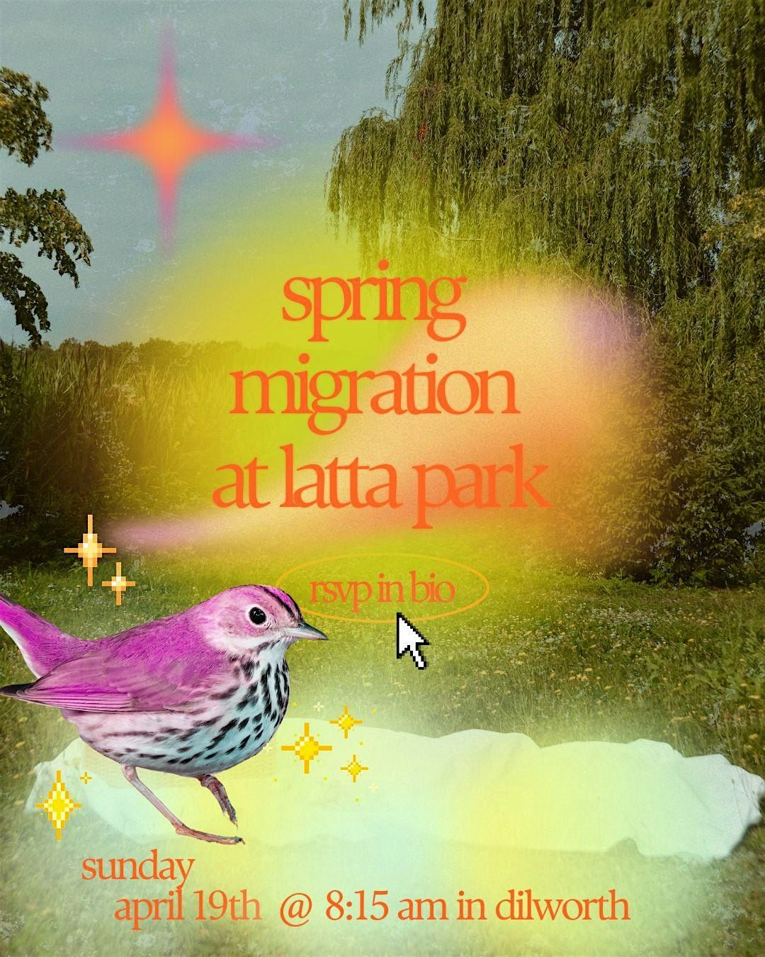 latta might be a city park, but the tree canopy and creek turn it into a really active stopover for migrating birds. warblers are the main event, but we’ll also be on the lookout for whatever else is moving through.