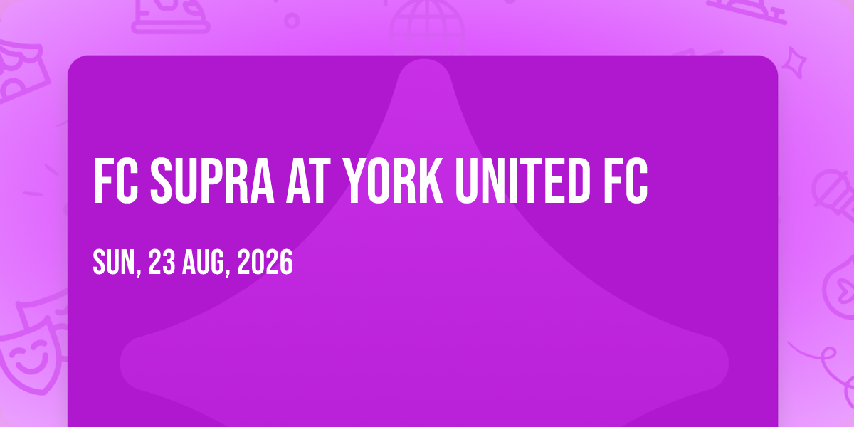 📍 Location: 43.7689, -79.5035🎉 Prepare to be amazed at FC Supra at York United FC, the most anticipated gathering of the season! 🌟 Set against the stunning backdrop of York Lions Stadium in vibrant Toronto, ON, this event promises to redefine your expectations. 📅 Mark your calendars for October 7th, 2026 at 11:30 PM and get ready to immerse yourself in an atmosphere of wonder and excitement. ✨ From the moment you arrive, you'll be transported into a world where memories are made and stories come alive. They have crafted an experience that perfectly harmonizes entertainment, innovation, and community spirit. 🌈 Join us as we create moments that will be discussed for years!