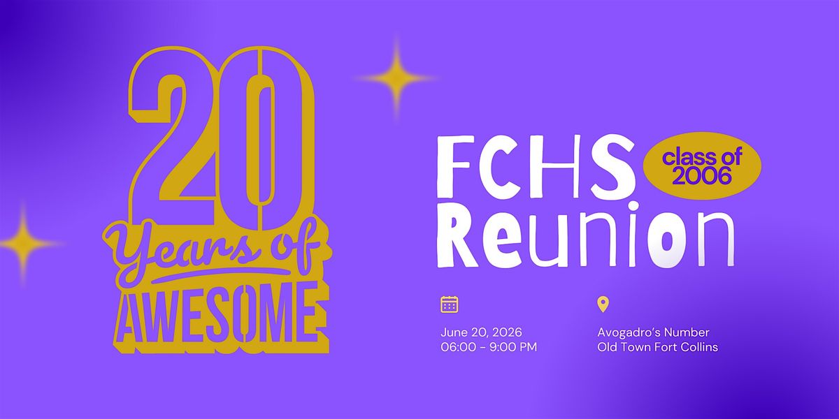 Can you believe it’s been 20 years? Come reconnect with the FCHS Class of 2006 for a low-key, laid-back night on the Back Patio at Avogadro's Number in Old Town Fort Collins. Good vibes, familiar faces, and plenty of laughs and throwback stories. Heavy apps included and a cash bar will be available.