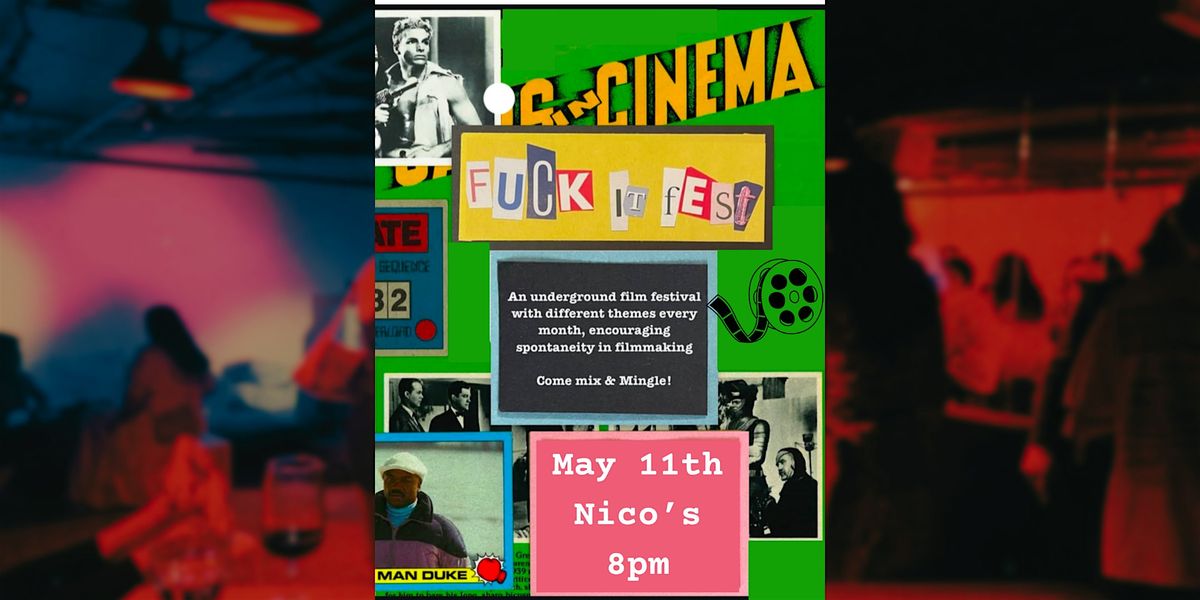Fuck It Fiilm festival is a bi-monthly film screening of shorts produced in the spirit of spontaneity. Fuck It encourages filmmakers to temporarily buck the usual labor of filmmaking (budgets, admin, lengthy productions, expensive gear, etc.) and to instead make something scrappy within a month of the screening. There’s a time and a place to be precious about filmmaking — this is not that place. Our bi-monthly screenings are a great opportunity to meet artists from around the city. Shows are roughly an hour and feature time before and after the screening to meet crew, writers, actors, and directors.