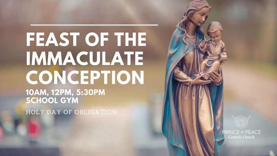 On Thursday, December 8 we celebrate Mary, full of grace, who was freed from the stain of original sin. Our Masses will be celebrated at 10:00 am, 12:00 pm and 5:30 pm in our Prince of Peace gym. This is a holy day of obligation.