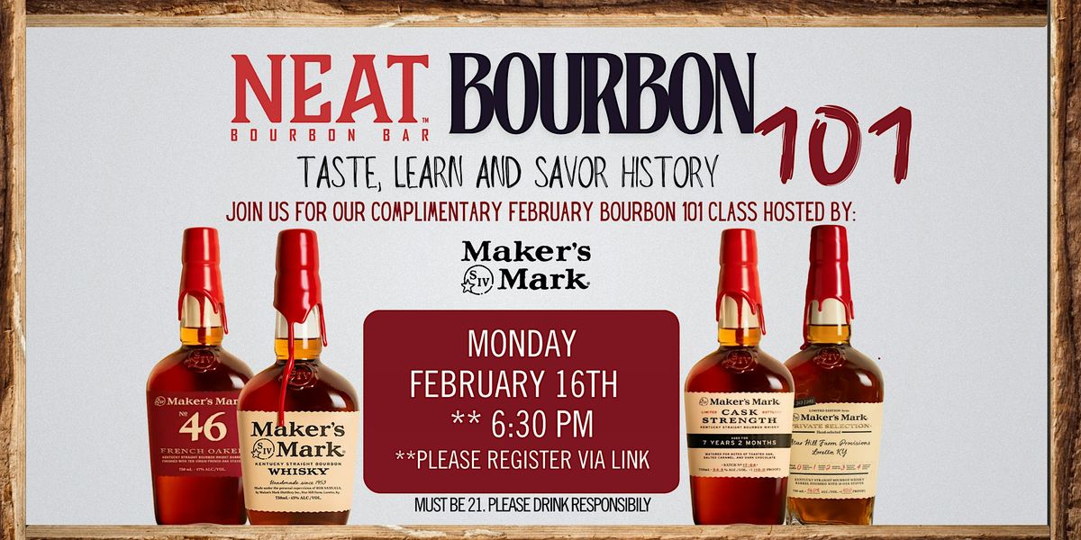 Join us for our complimentary FEBRUARY BOURBON 101 CLASS HOSTED BY: MAKER'S MARK!