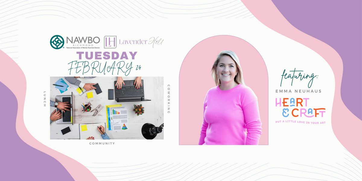 Info: Tackle your to-do list alongside your NAWBO sisters, all while enjoying the cozy charm of Lavender Hill.