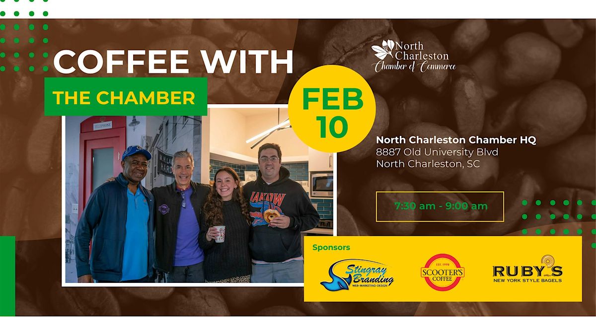 ✨ Start your morning by connecting with fellow professionals in our community! Join us for Coffee with the Chamber on Tuesday, February 10, 2026, from 7:30 AM to 9:00 AM at the North Charleston Chamber HQ. Enjoy coffee and bagels in the lobby while building meaningful connections with local business leaders. ☕️