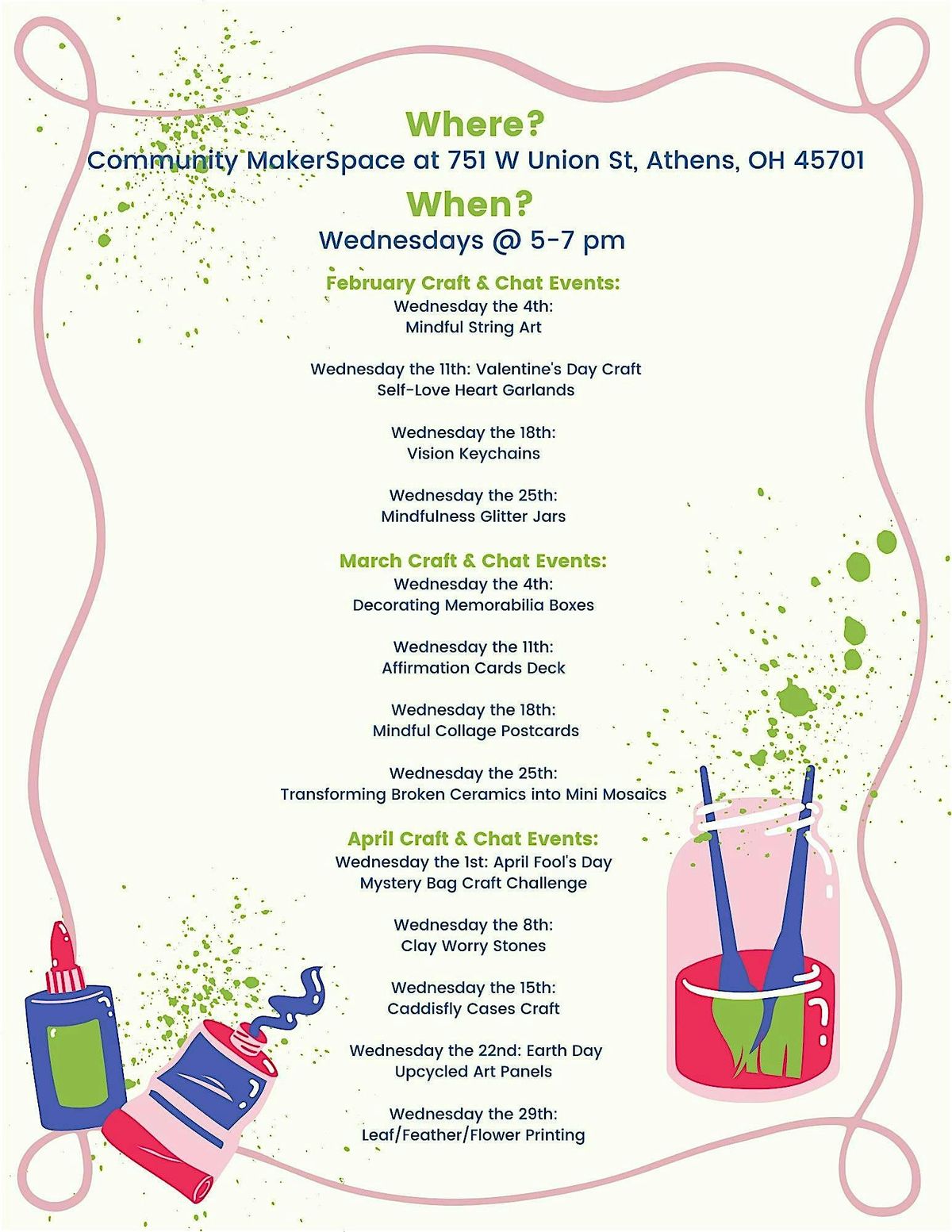 Looking for a midweek refresh? Join us for FREE, hands- on craft nights designed to spark creativity, boost wellness, and connect with community. Each week, we'll explore wellness- inspired art activities enjoying conversation in a relaxed space. No experience needed!