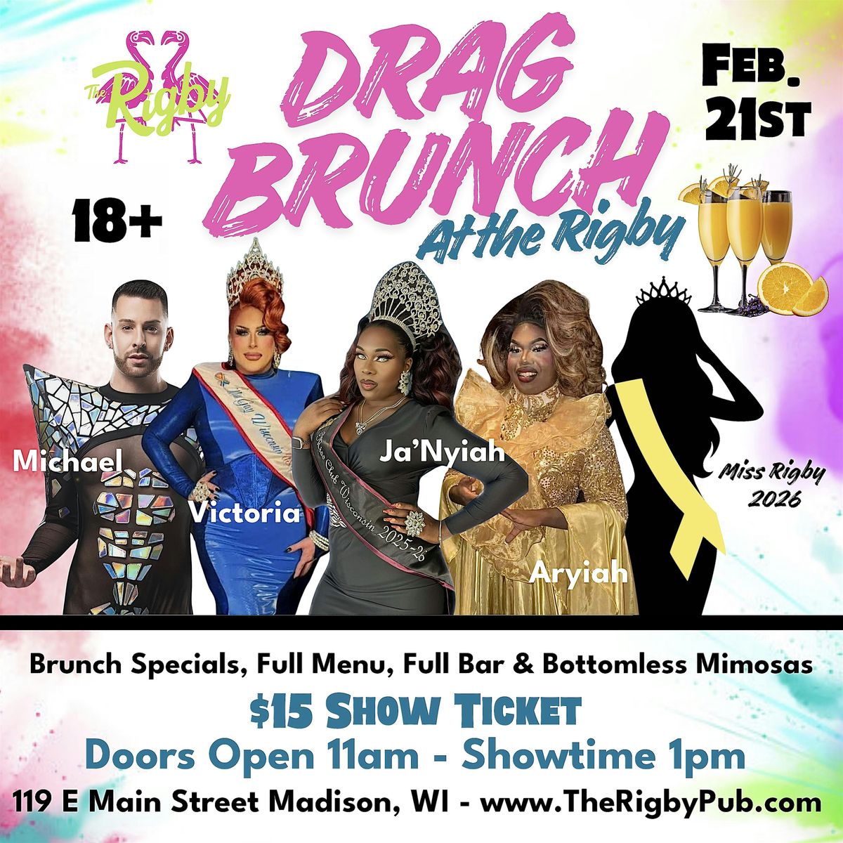 Join us for a fabulous afternoon of entertainment and mouth-watering food at The Rigby Pub, Grill, and Event Space. Get ready to be dazzled by the most talented drag performers in town, as they lip-sync, dance, and strut their stuff right before your eyes.