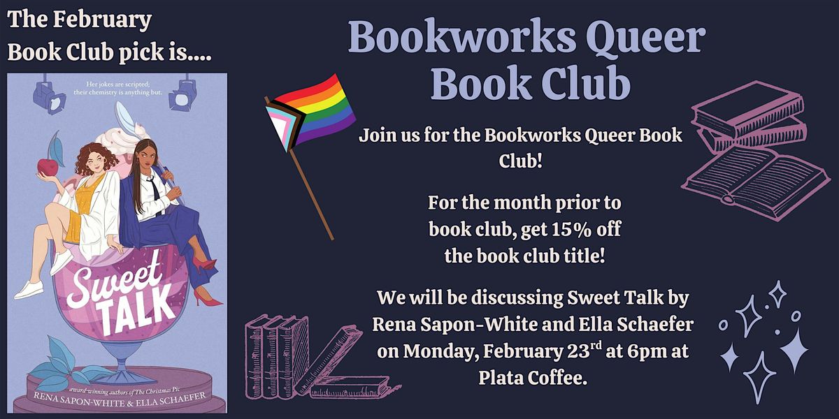 Join us for the Queer Book Club where we'll read a range of fiction and non-fiction by LGBTQIA+ authors. In February, we will be reading Sweet Talk by Ella Schaefer and Rena Sapon-White, featuring a special author talk with both authors!