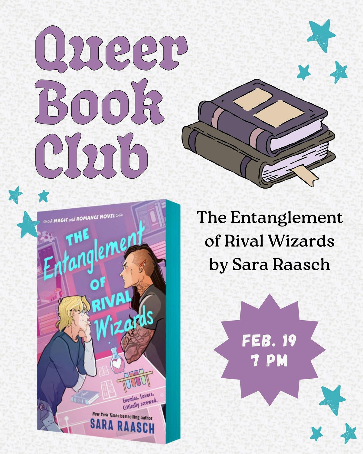 Join us for our monthly Queer Book Club discussion. For February, we will be discussing ENTANGLEMENT OF RIVAL WIZARDS by Sara RaaschAbout this Event