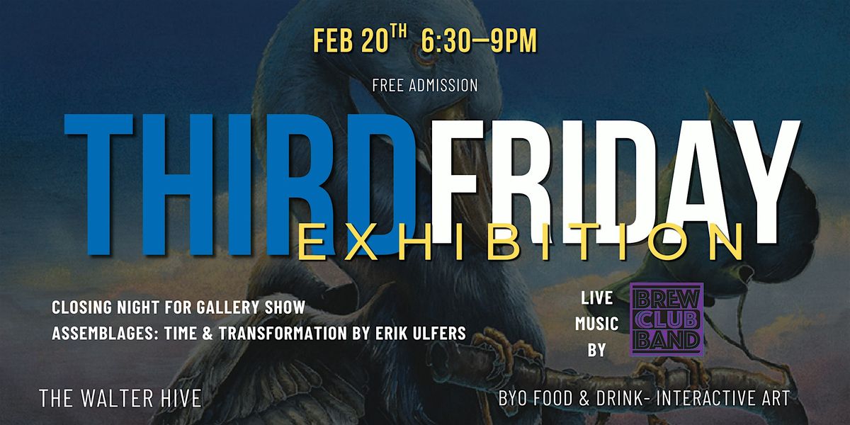 We are featuring the closing show of Assemblages: Time & Transformation in our art gallery. The Brew Club Band will also be performing in the Dome.