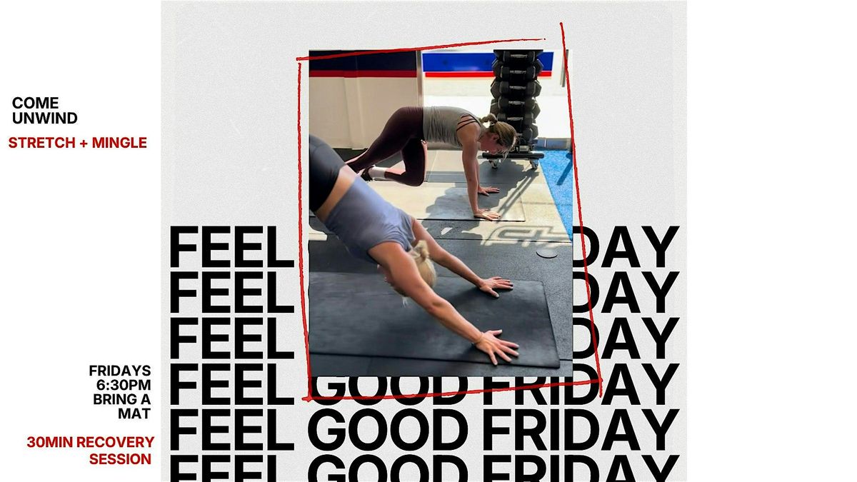 Kick back and unwind every Friday with Feel Good Fridays! This in-person event is all about good vibes, great company, and a chance to relax + recover after a busy week. Whether you're looking to chill out or meet new friends, we've got you covered. Come join us for a laid-back session at the studio. Don't miss out on the best way to start your weekend! Open to everyone.