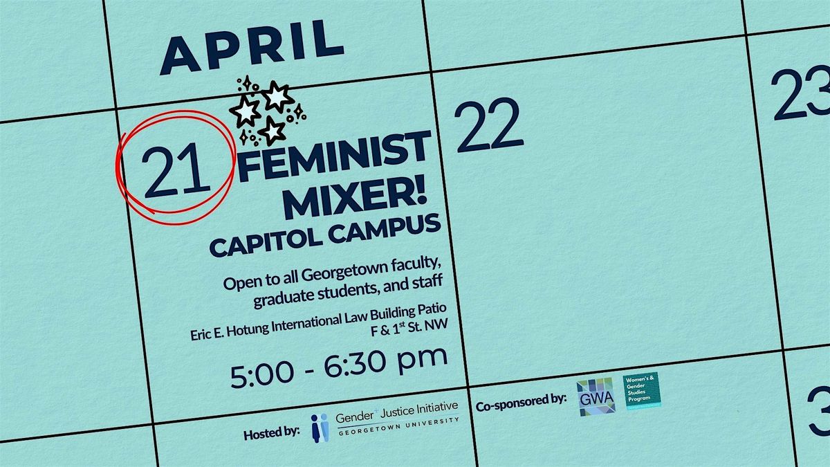 Join Georgetown University's Gender+ Justice Initiative, the Women and Gender Studies Program, and the Georgetown Women's Alliance for the Feminist Mixer! Connect with fellow feminist faculty, staff, and graduate students from the Capitol and Law campuses. Introductions begin at 5:30 PM. This is a great opportunity to build new connections and explore the diverse expertise within our university community.
