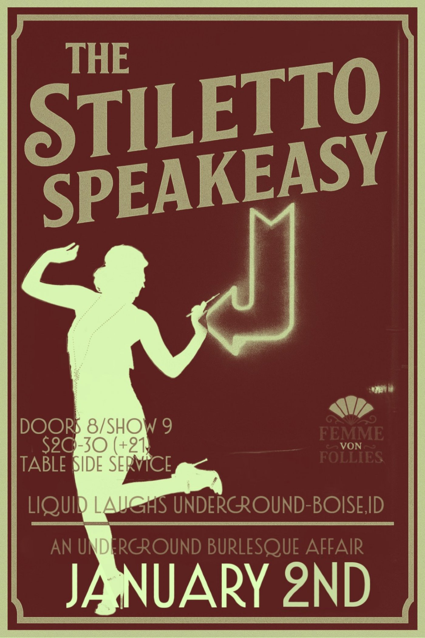 The Silhouette Speakeasy is an intimate burlesque experience hidden beneath the city’s surface at Liquid Laughs Underground. Inspired by the secret revelries of the roaring ’20s, this exclusive evening invites you to slip past the velvet curtain into an era of champagne whispers, shadowed silhouettes, and the tantalizing tease of classic burlesque. Arrive in your finest flapper or dapper attire and enjoy tableside service provided by the upstairs restaurant, Solid.