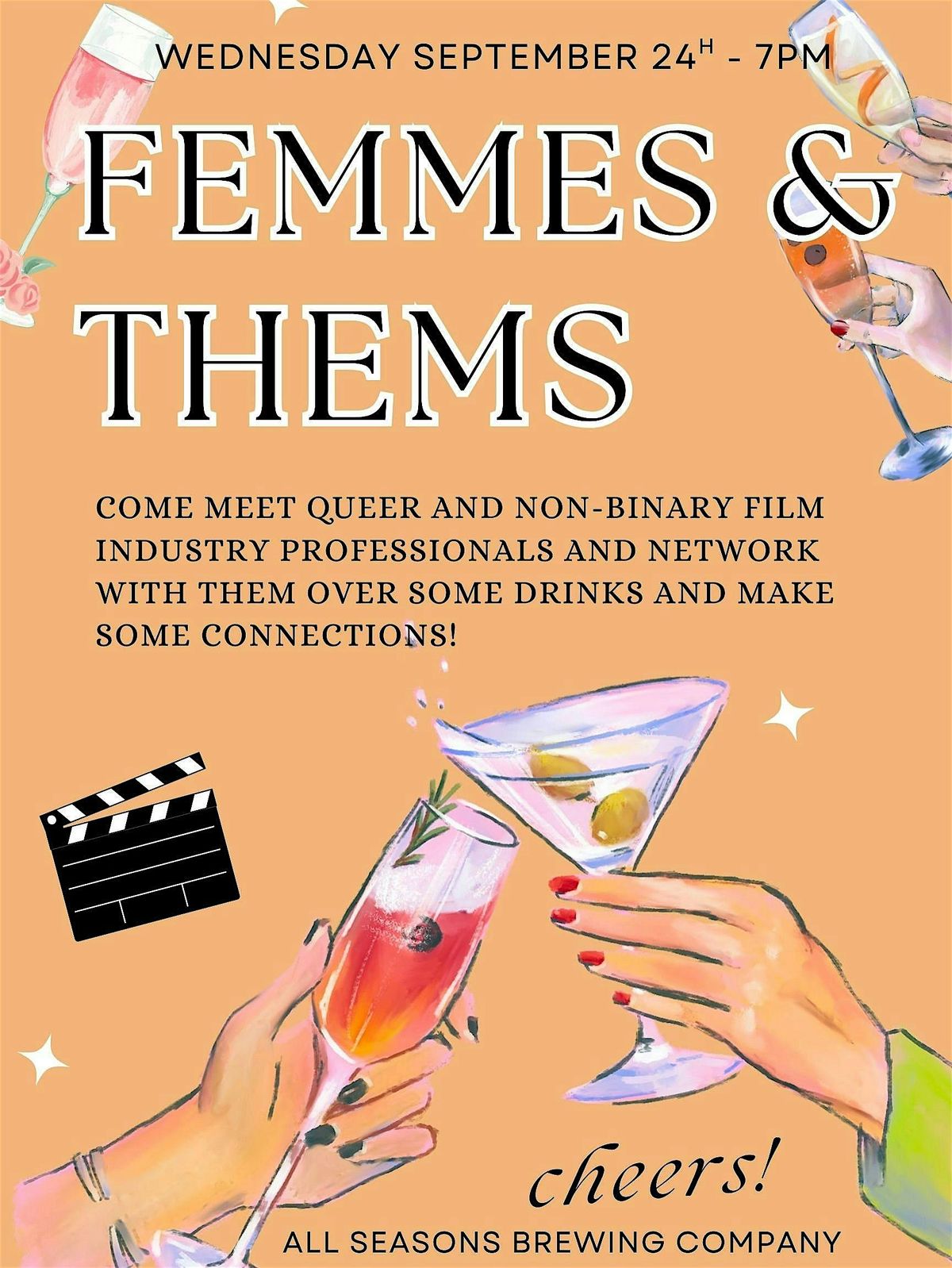 Meet queer and non-binary film industry professionals and network with them over some drinks!About this Event