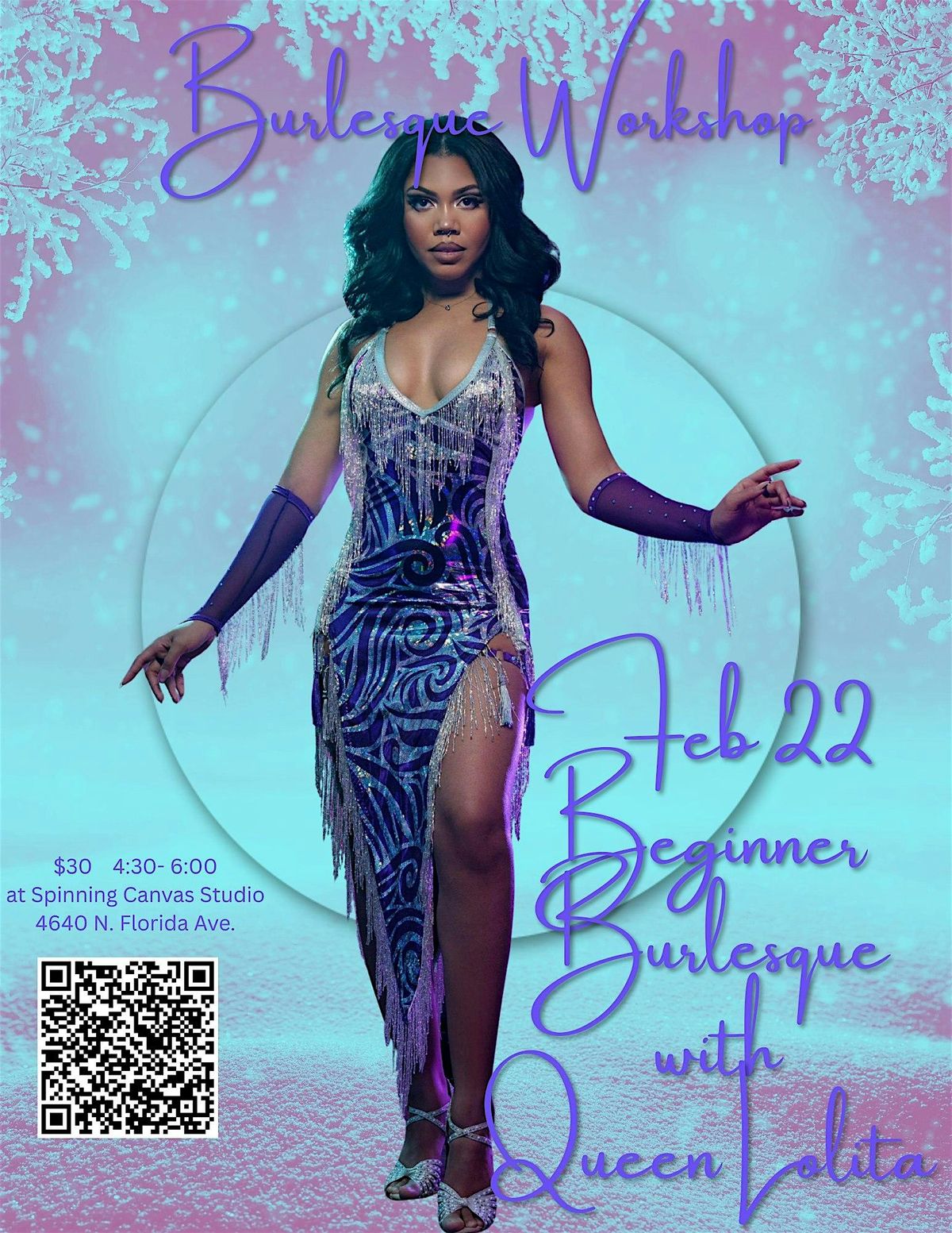 Welcome to Femmes & Follies: Beginner Burlesque with Queen Lolita! Join us at Spinning Canvas Studio on February 22, 2026 at 4:30 PM (Eastern Time) for a fun and empowering burlesque workshop. Whether you're a seasoned performer or a total newbie, Queen Lolita will guide you through the basics with style and confidence. Get ready to unleash your inner showgirl and shimmy the night away! Don't miss out on this fabulous event!