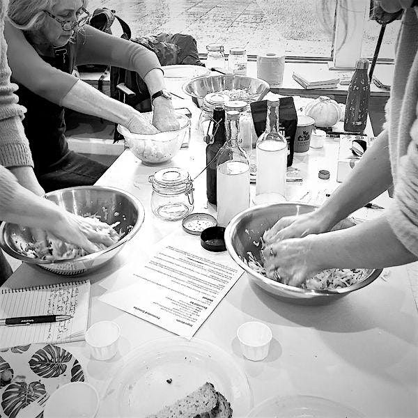 *You’ll receive a complimentary glass of kefir, tasters of kraut and pickles, and printed recipes to take home—along with your own jar of freshly made sauerkraut!
